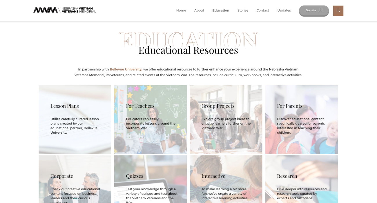 In partnership with Bellevue University, we offer educational resources to further enhance your experience around the Nebraska Vietnam Veterans Memorial, its veterans, and related events of the Vietnam War. The resources include curriculum, workbooks, and interactive activities.